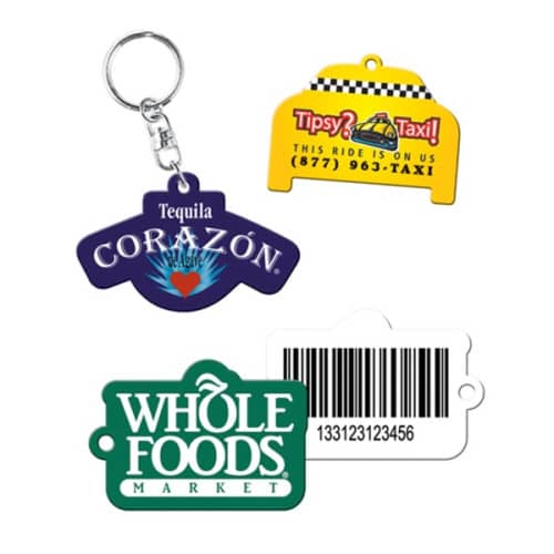 Make a bold brand statement on a product your customers will have in their hands daily with these custom keychains! Measuring 5-8 square inches, these handy and eye-catching items can be customized with our exclusive Digitek 4/C process method printed directly on the plastic with a high-gloss laminated finish. Double-sided printing is available, and they can also be used as customer rewards cards. The possibilities are endless!