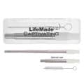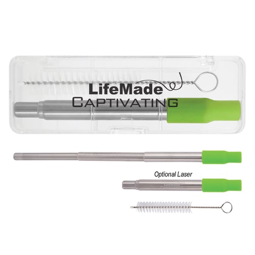 8 ½" Stainless Steel Straw, Silicone Tip And 3 ¾" Wire Cleaning Brush. Reusable. Protective Travel Case. Hand Wash Recommended.