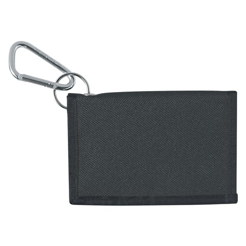 Outside Front Pocket. Inside Pocket And Zippered Pocket. Inside Clear ID Window. Hook And Loop Closure. Split Ring And Carabiner Attachments.
